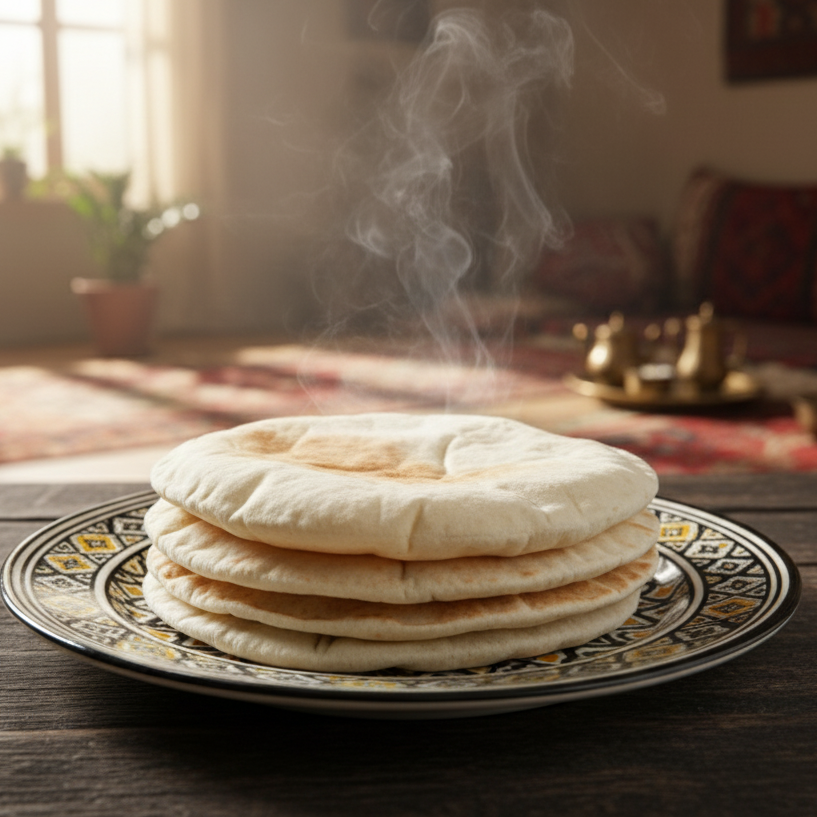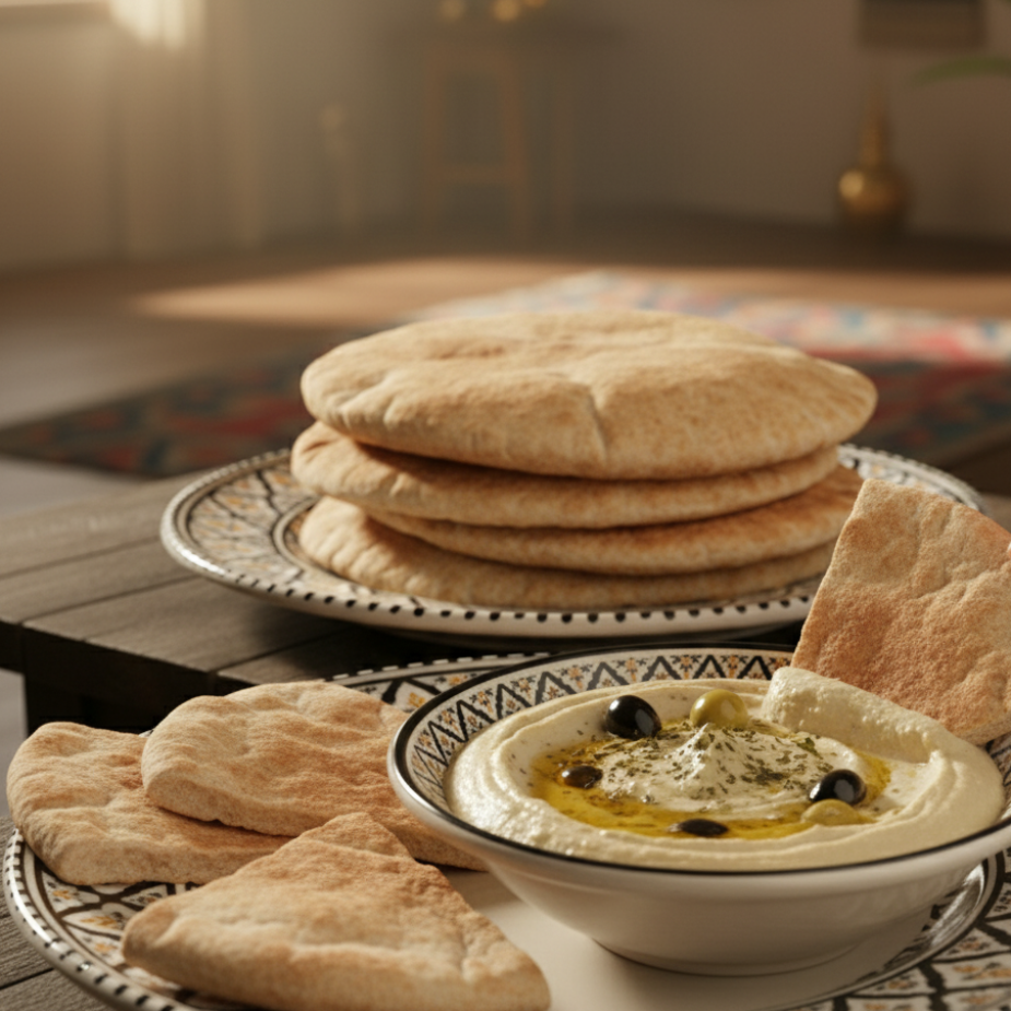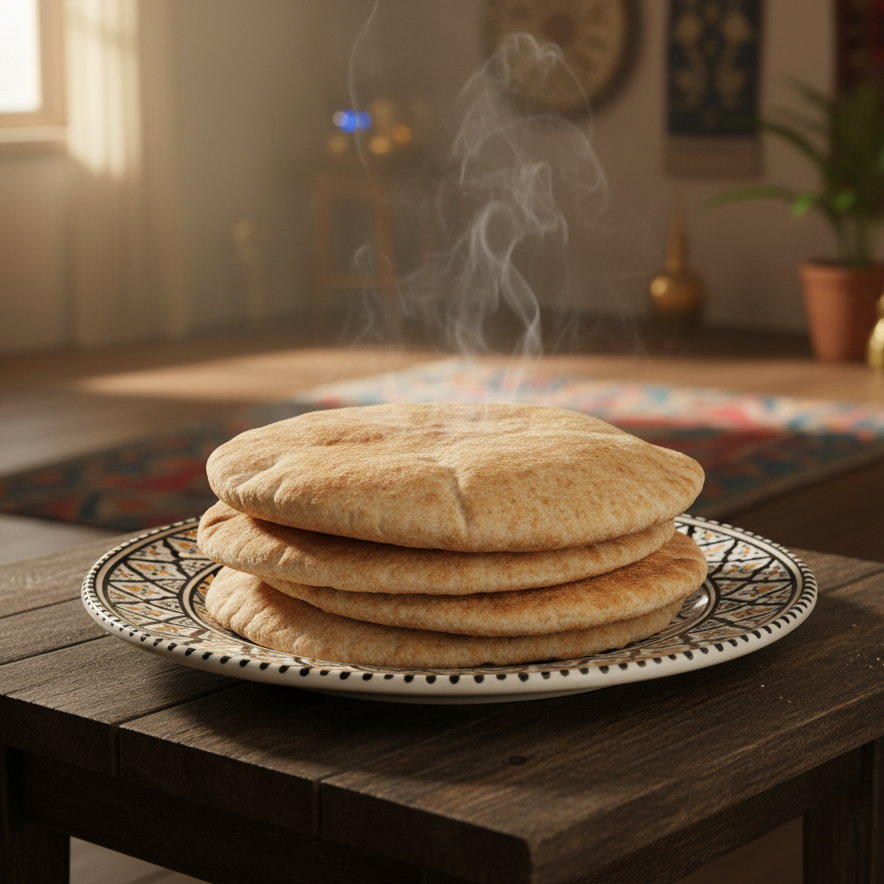 Our 12-inch white pita is the crown jewel of Syrian bread-making—impossibly soft, beautifully light, and so authentic it melts in your mouth. Baked using premium white flour and traditional Syrian techniques passed down through generations, this generously sized pita delivers the classic taste and pillowy texture that Middle Eastern cuisine is famous for.
